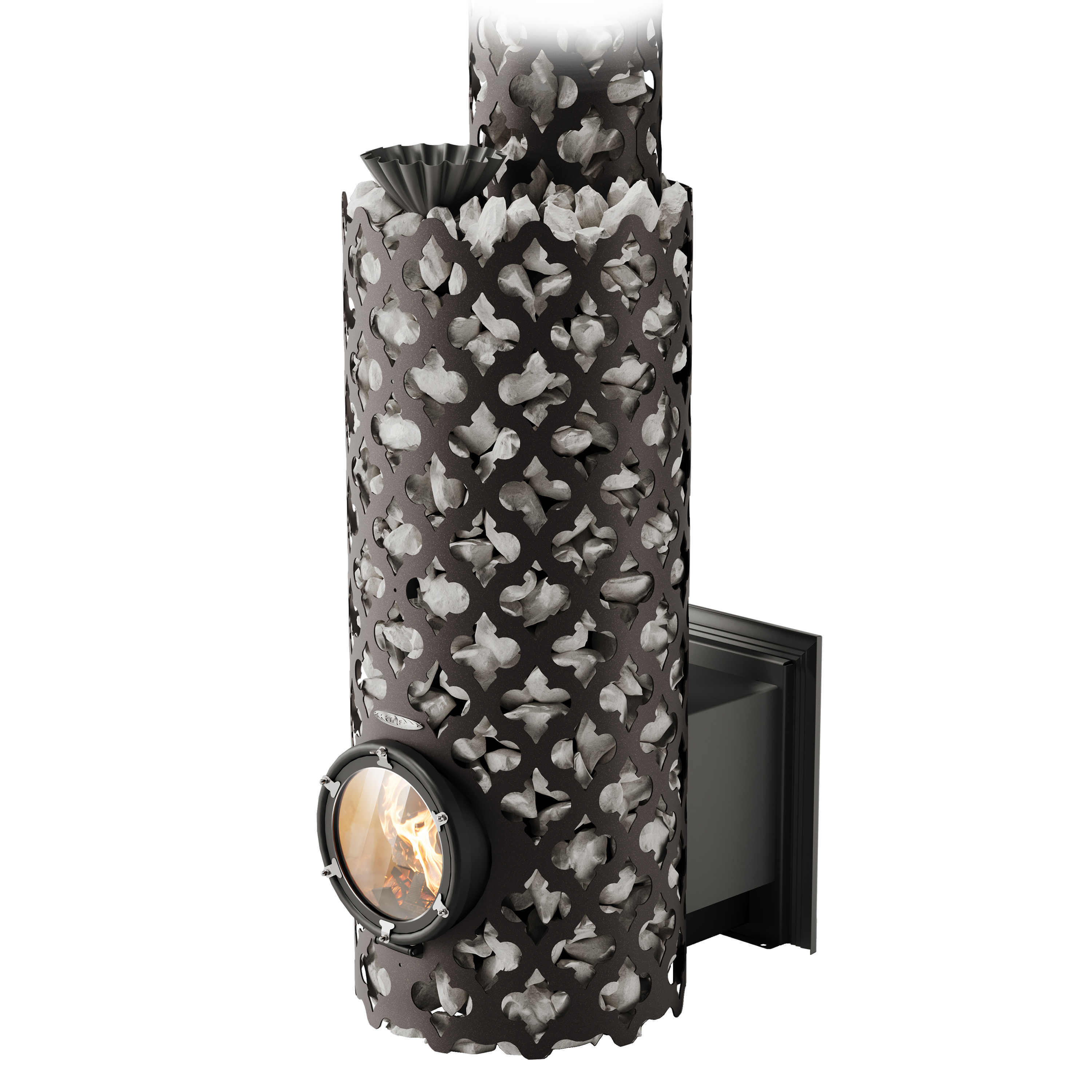 Обращаем ваше внимание, что печь поставляется без натрубного декоративного кожуха. Натрубный сетчатый кожух «Арабеска» можно приобрести отдельно.